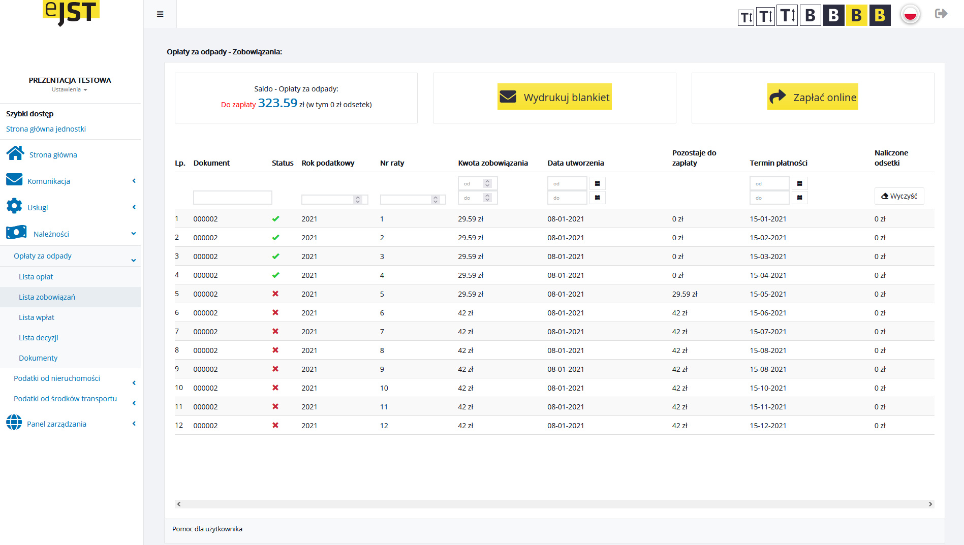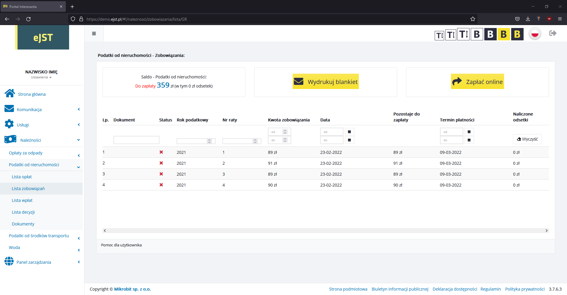 Portal Interesanta zintegrowany jest z systemami dziedzinowymi mERP, jak np.: Podatki [BPD], Gospodarka Odpadami [BGO], Rozliczenie zużycia wody [BWD]. Udostępnia aktualne informacje związane z zobowiązaniami w stosunku do urzędu: podatki od nieruchomości, rolny, leśny, od środków transportu, opłaty lokalne np. z tytułu dzierżaw, użytkowania wieczystego, opłaty za wodę i inne.